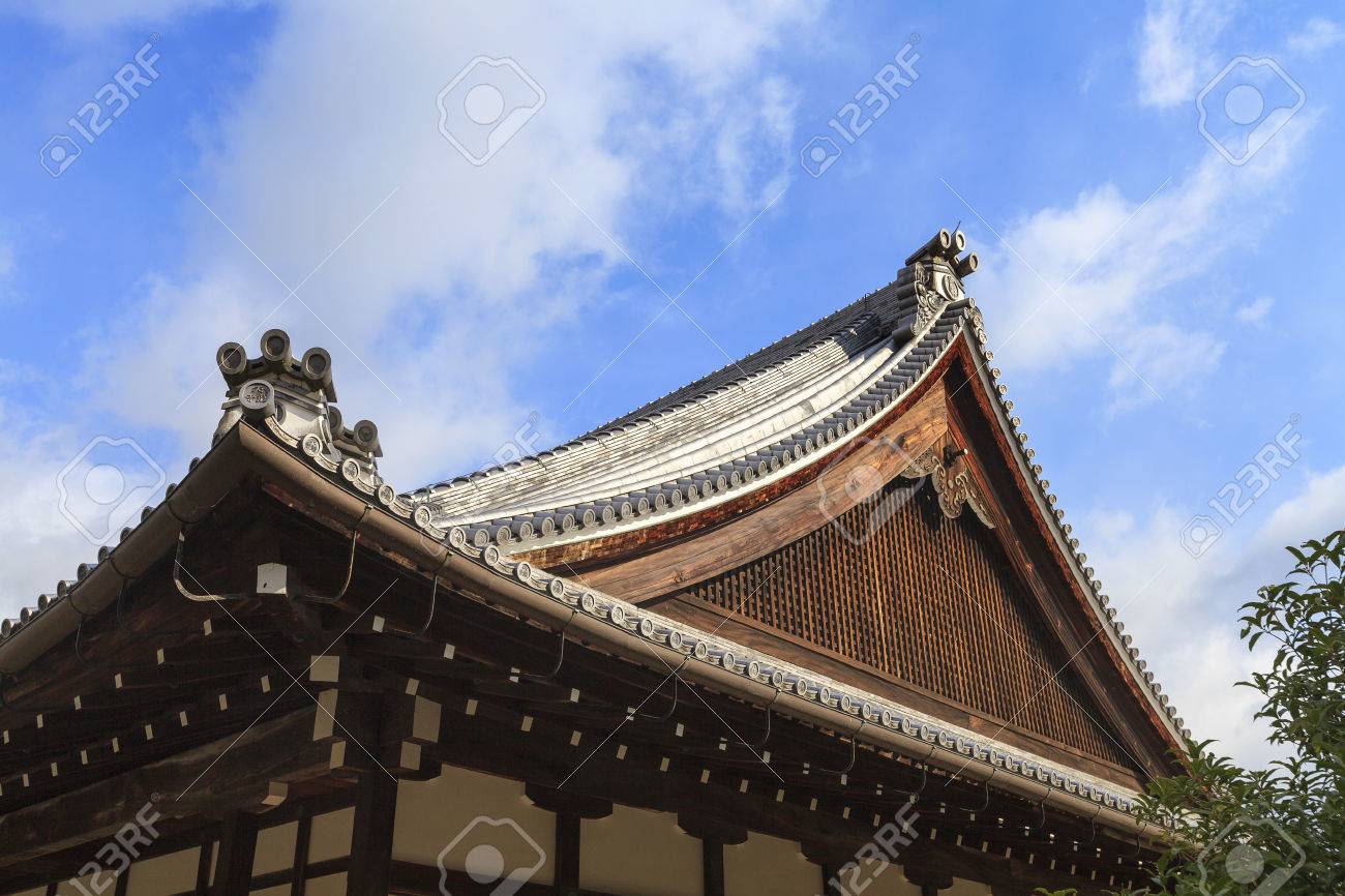 京都の天竜寺青空日本のお寺の屋根の詳細 の写真素材 画像素材 Image